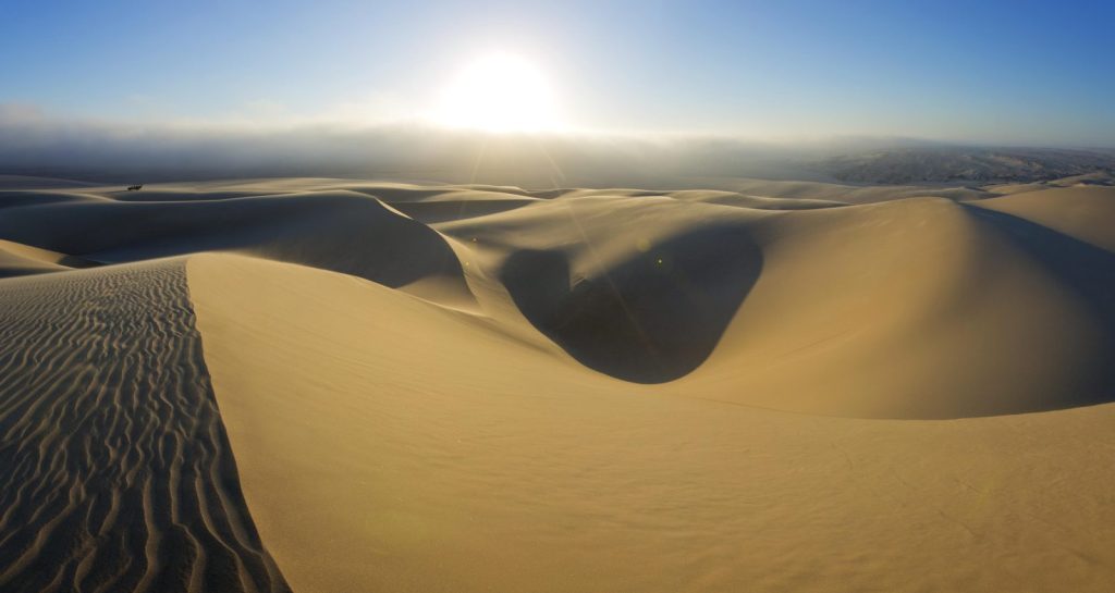 Board the light aircraft for the flight to NamibRand Nature Reserve. From above, the desert landscapes unfold, offering your first aerial perspective of Namibia and its incredible vastness. Land in the remote reserve and transfer to Kwessi Dunes, an exclusive lodge beneath towering red sand dunes. Spend the afternoon relaxing or exploring nearby ridges. Our favourite moment of your first night in desert – sundowners on the top of the dune. Seeing the sun paint the sky as you’re sipping on something cold – magic!